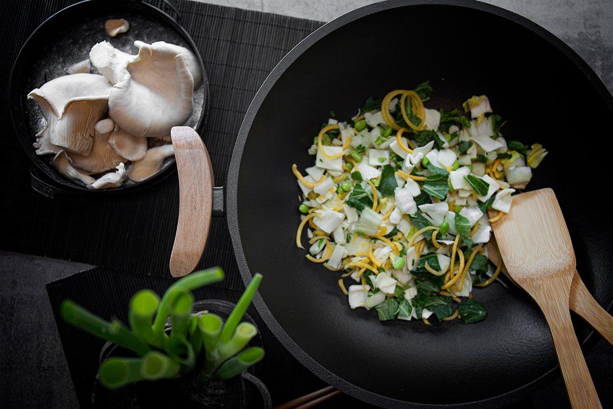A wadjan originates from Indonesia and is made of thicker steel or even cast iron. You use a wadjan for slower cooking. As you do not use it on a high flame, you do not need to be able to shake the contents. The wadjan is therefore fitted with two handles, also called 'ears'.